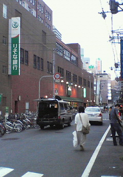 関西大学は銀行に背を向けてまっすぐ進んでいきます。